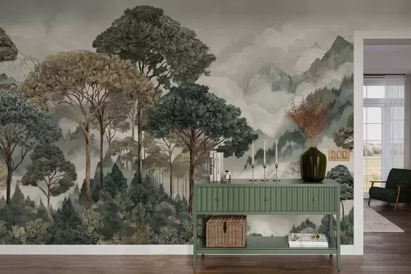 Fototapeedid Mägimaastik metsaga pehmetes toonides Nr w05410v1