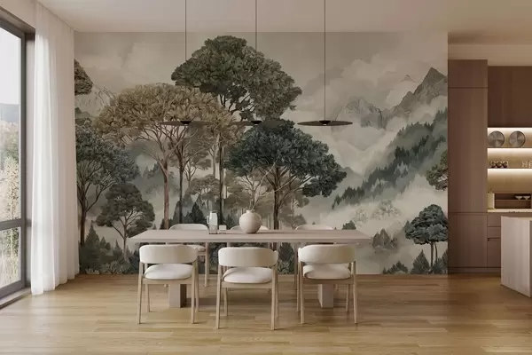 Fototapeedid Mägimaastik metsaga pehmetes toonides Nr w05410v1