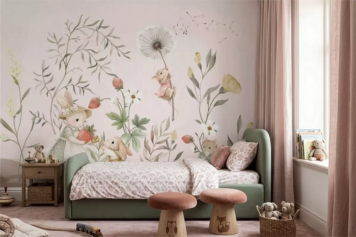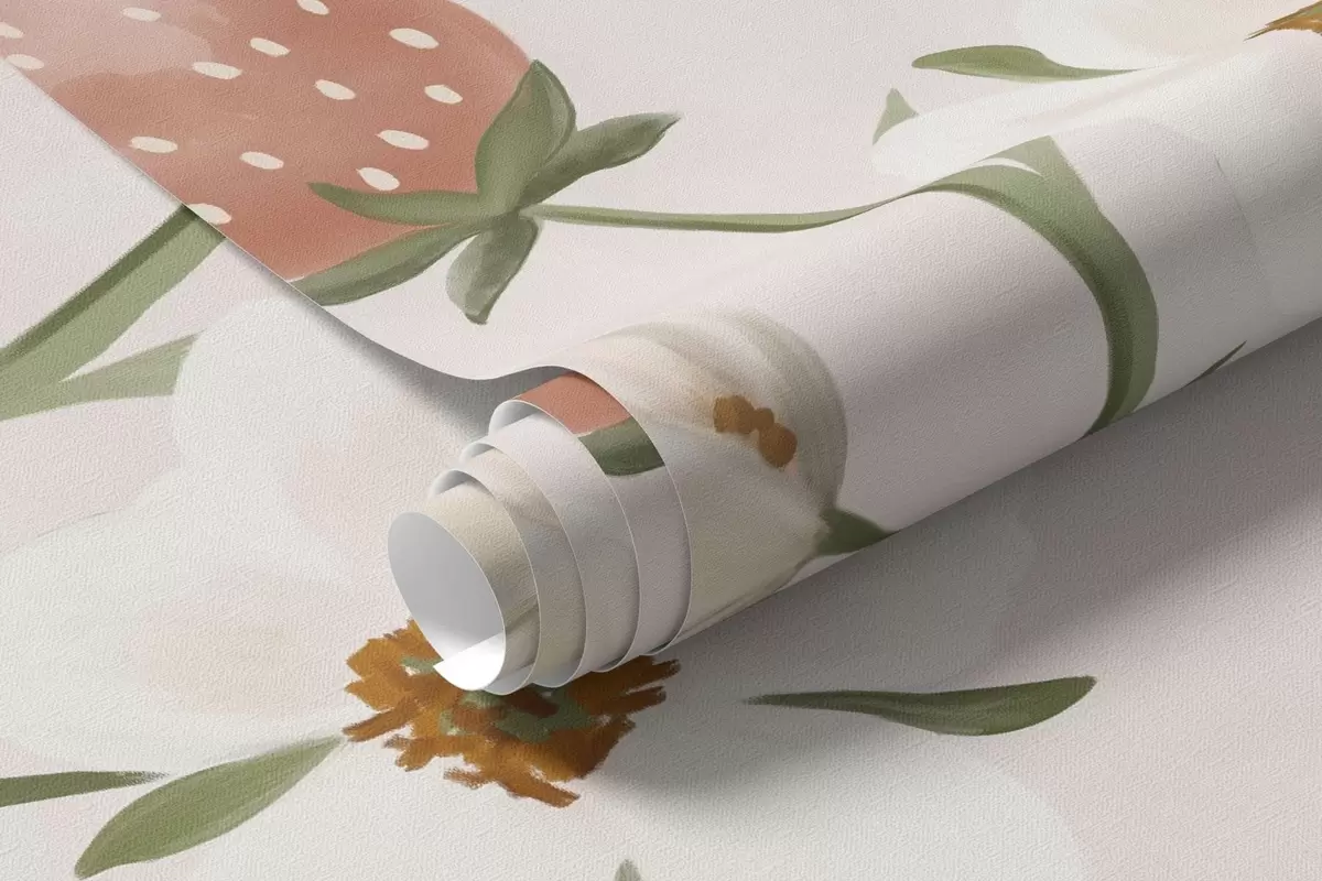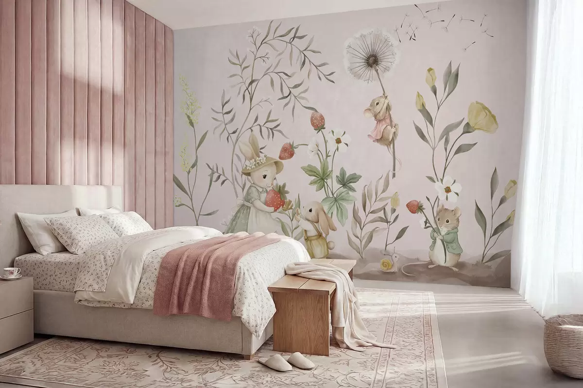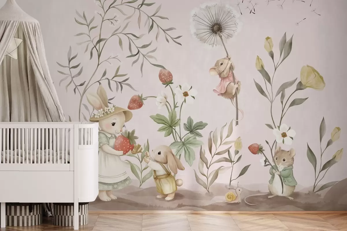 Fototapeedid Loomade illustratsioon maasikatega õrnroosa taustal Nr w05422v1