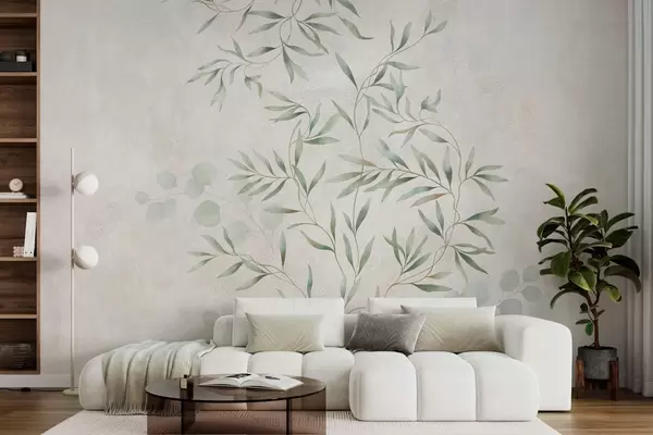Fototapeedid Õrn botaaniline mustri, millel on õhukesed oksad heledal taustal Nr w05424