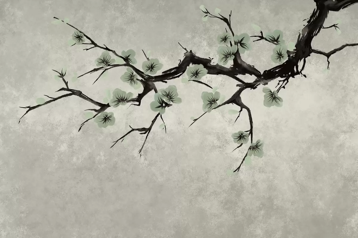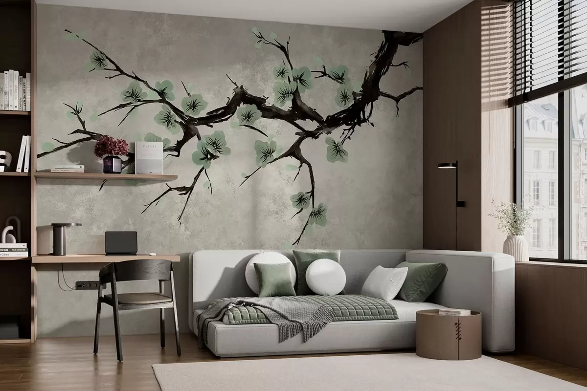 Fototapeedid Oks roheliste õitega rahulikes toonides Nr w05425v2