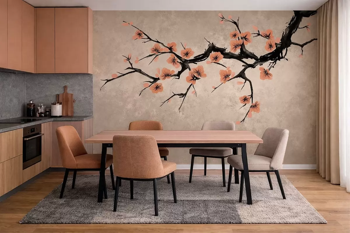 Fototapeedid Oks virsikuõitega tekstuurse taustaga Nr w05425v3