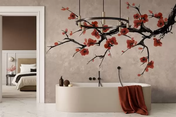 Fototapeedid Ida-stiilis õitsev oks beežil taustal Nr w05425v4