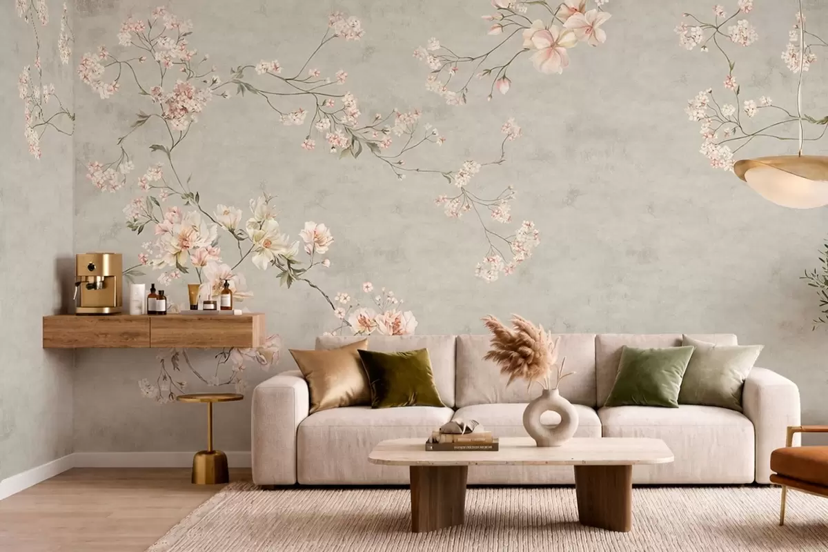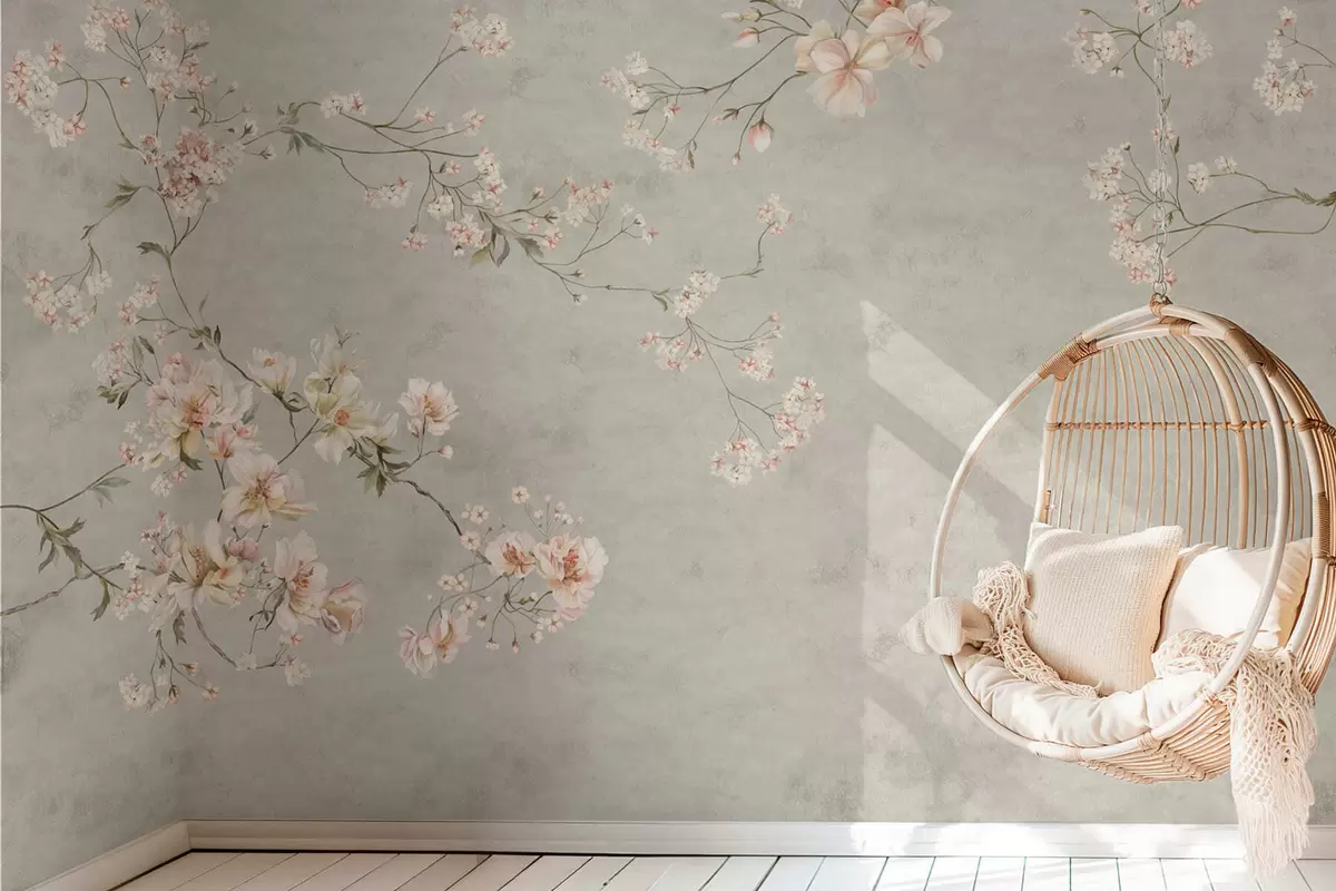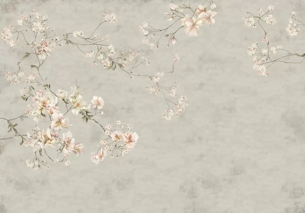 Fototapeedid Hiina stiilis lilleoksad hallil taustal Nr w05427v1