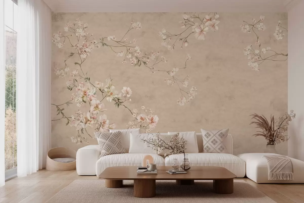 Fototapeedid Hiina stiilis lilleokad soojal beežil taustal Nr w05427v2