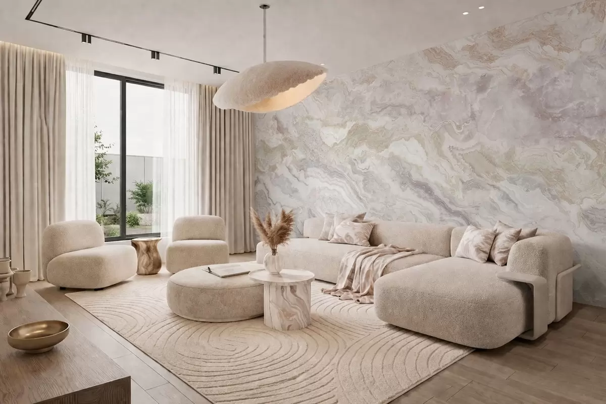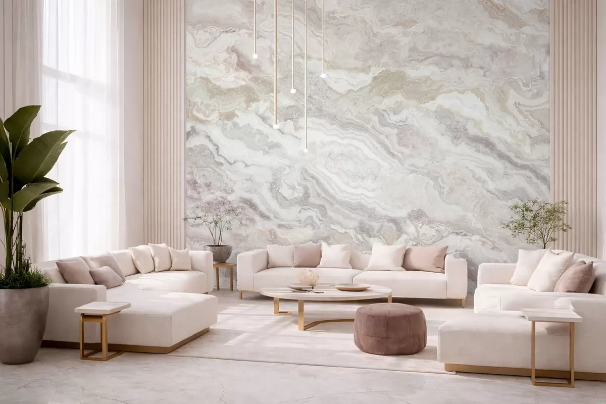 Fototapeedid Hele onüüks, millel on voolavad beežid ja hallid kihid Nr w05430
