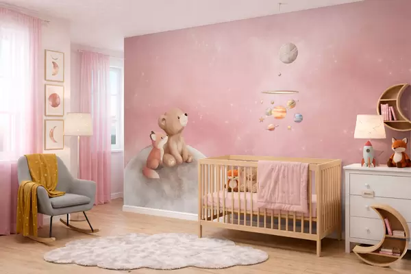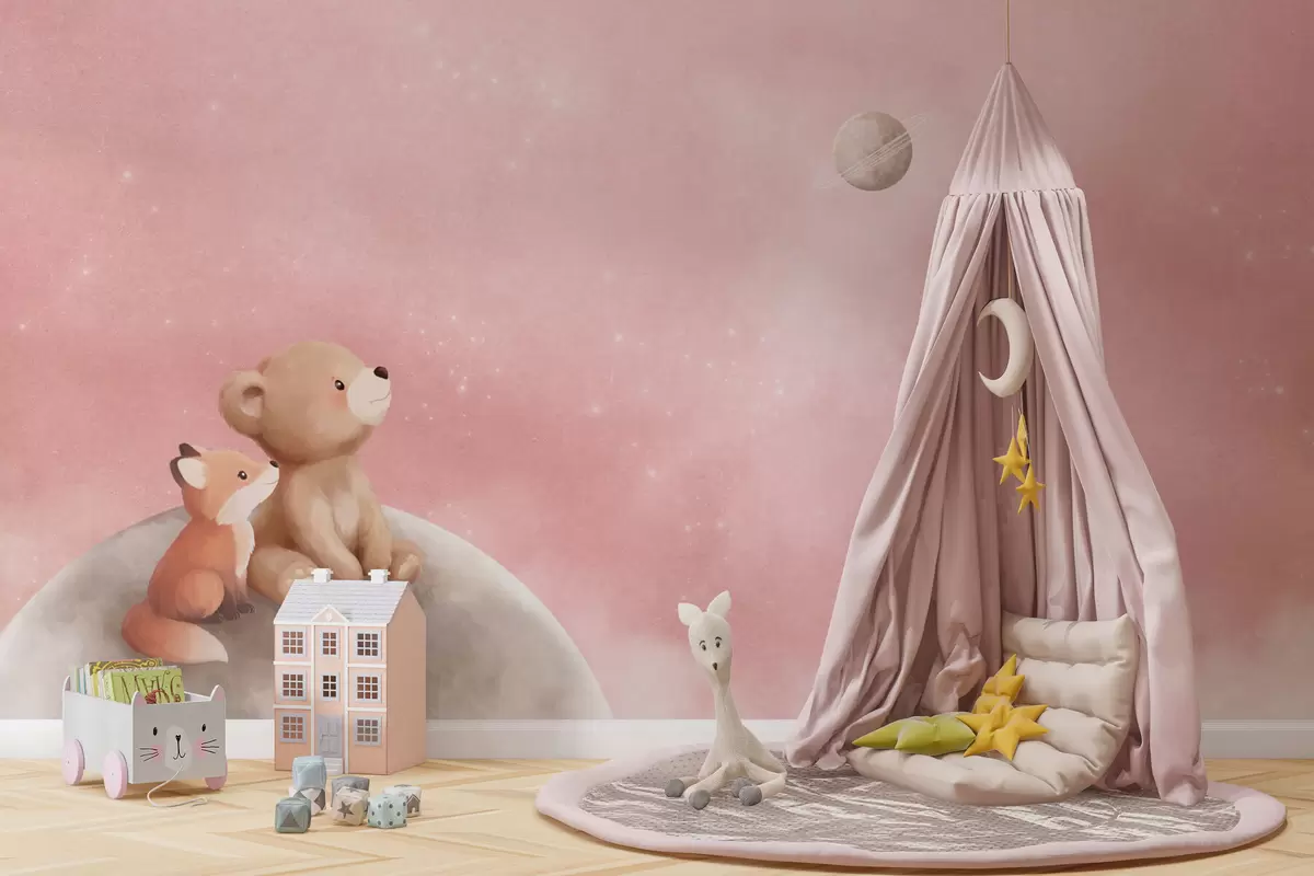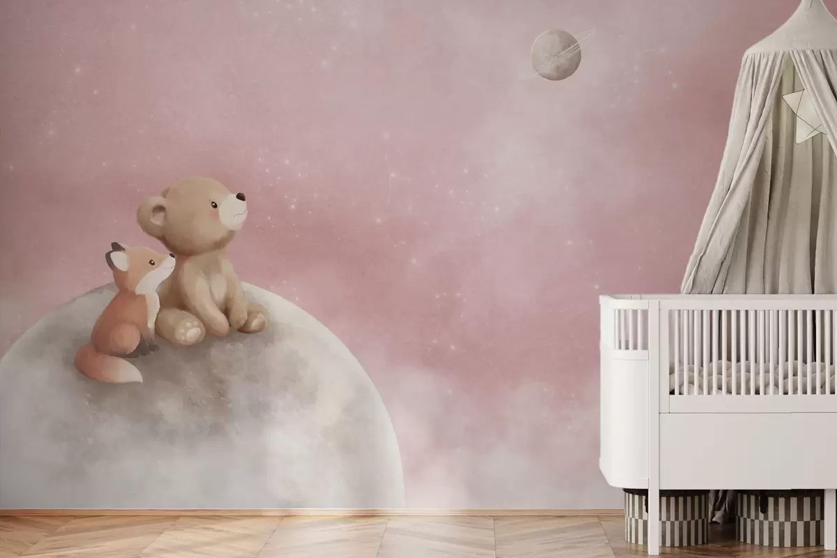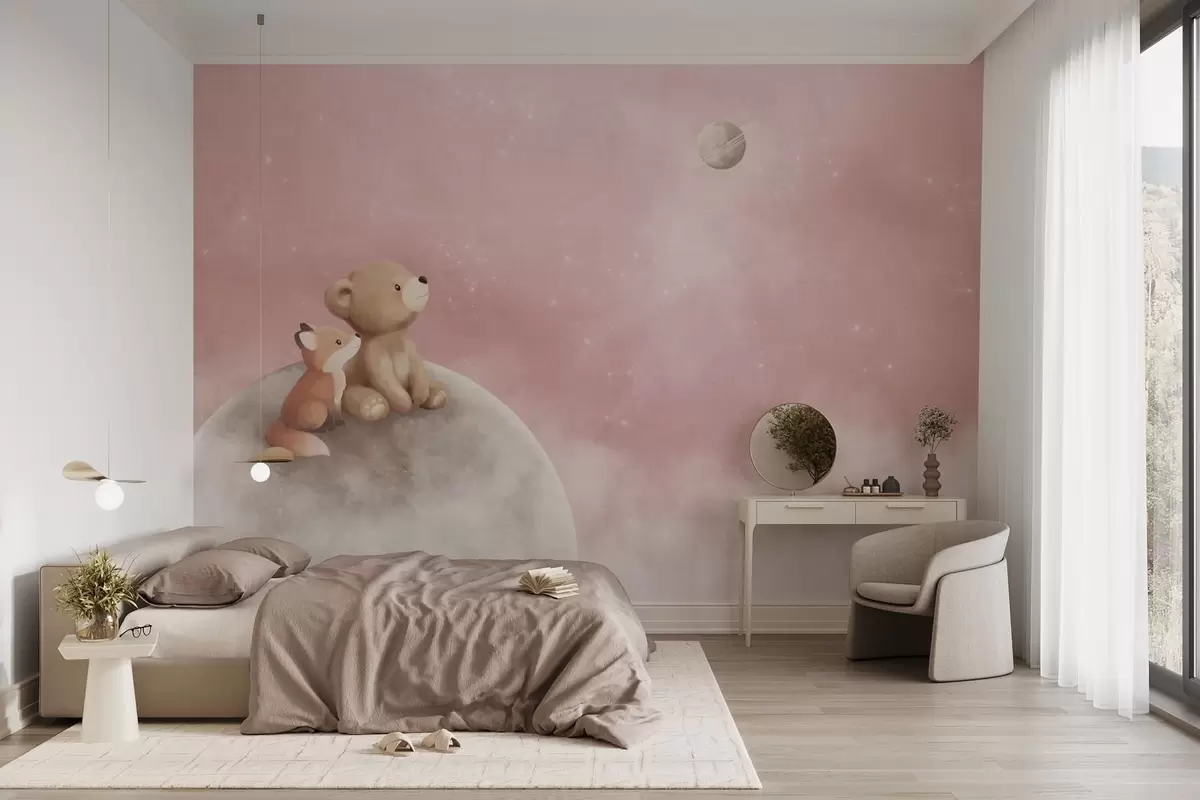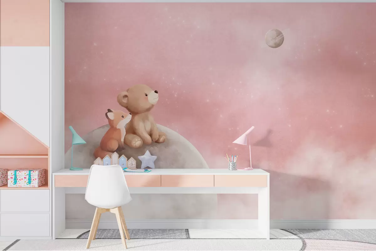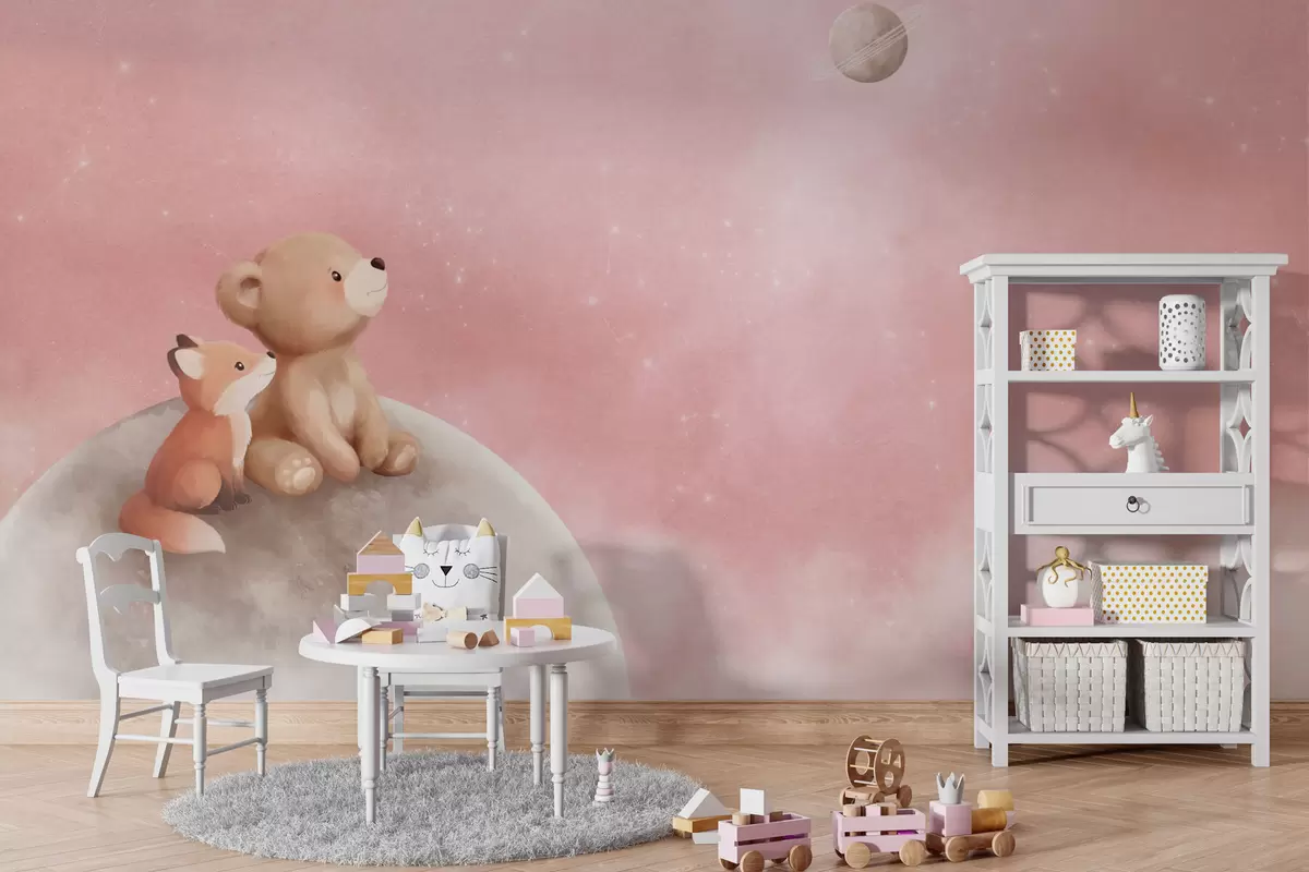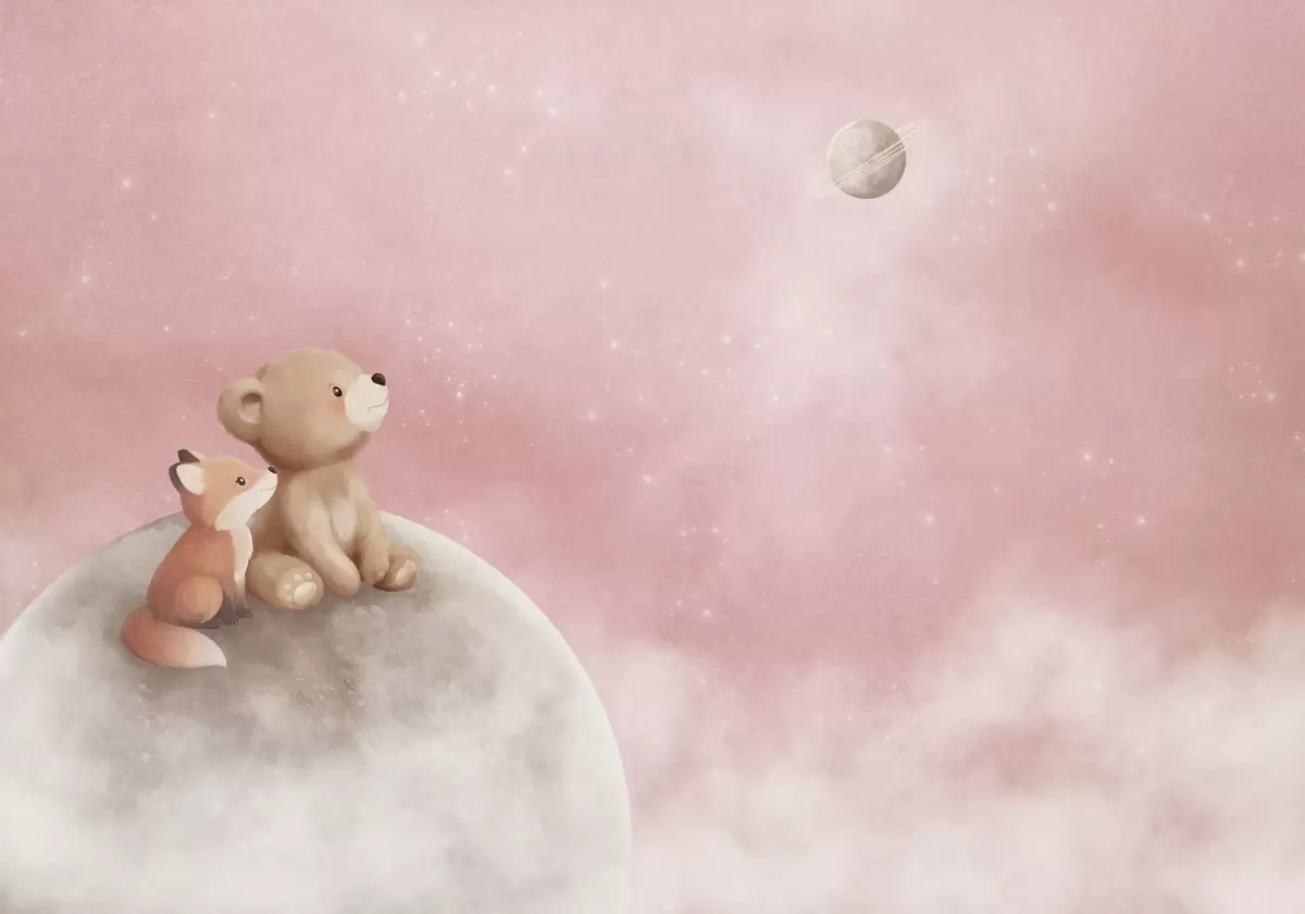 Fototapeedid Pastelljoonistus: karu ja rebane roosa taeva taustal Nr w05431v2