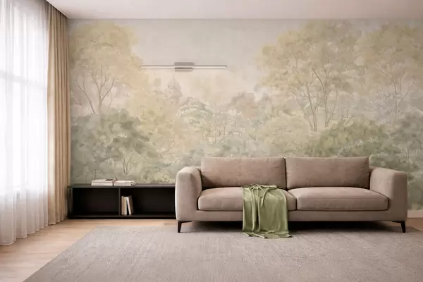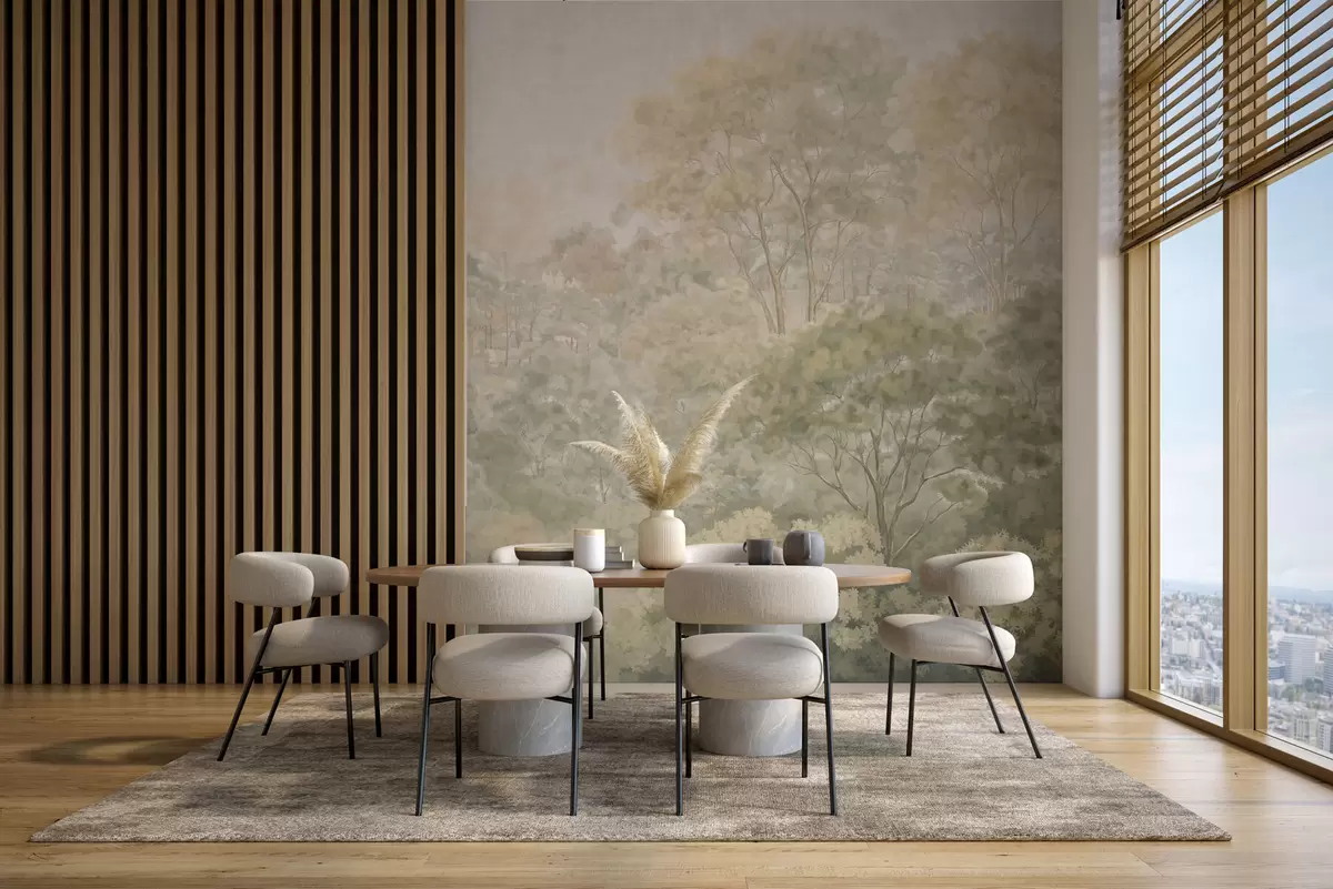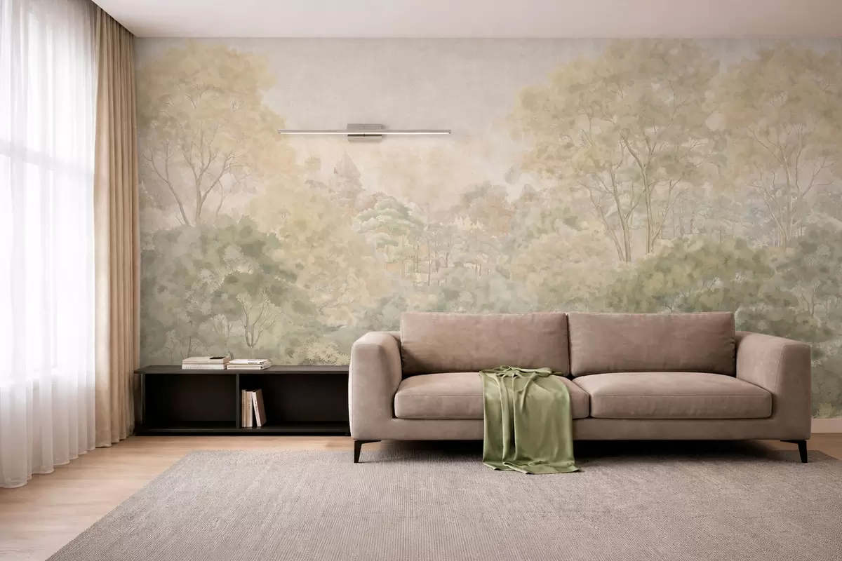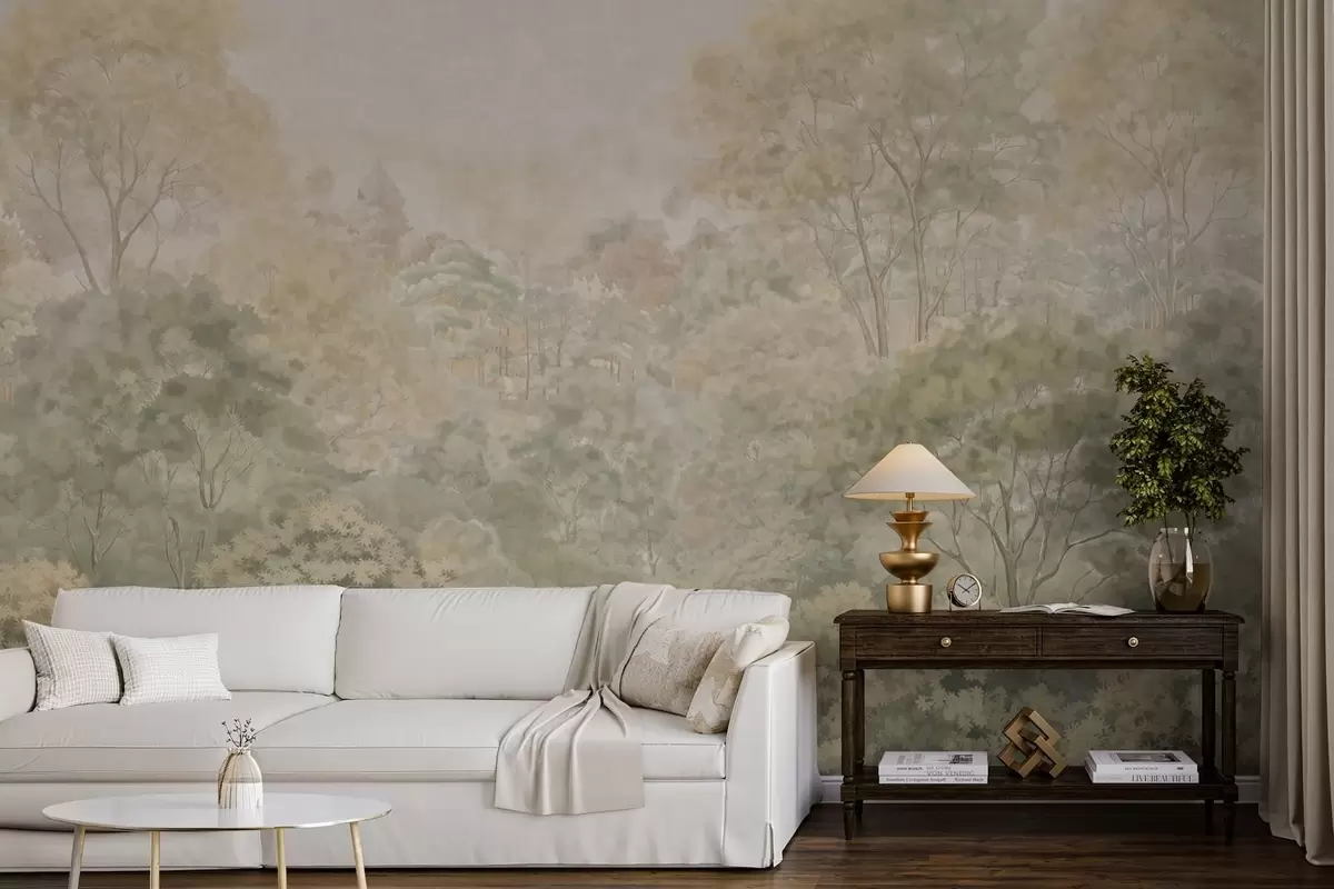 Fototapeedid Vintage-stiilis metsamaastik vaoshoitud rohelistes toonides Nr w05433