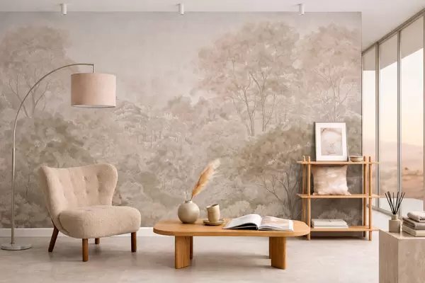 Fototapeedid Vintage-stiilis metsamaastik soojades beežides toonides Nr w05433v1
