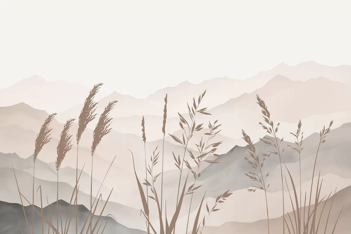 Fototapeedid Mägede taustal paistvad rohu siluetid Nr w05501v1