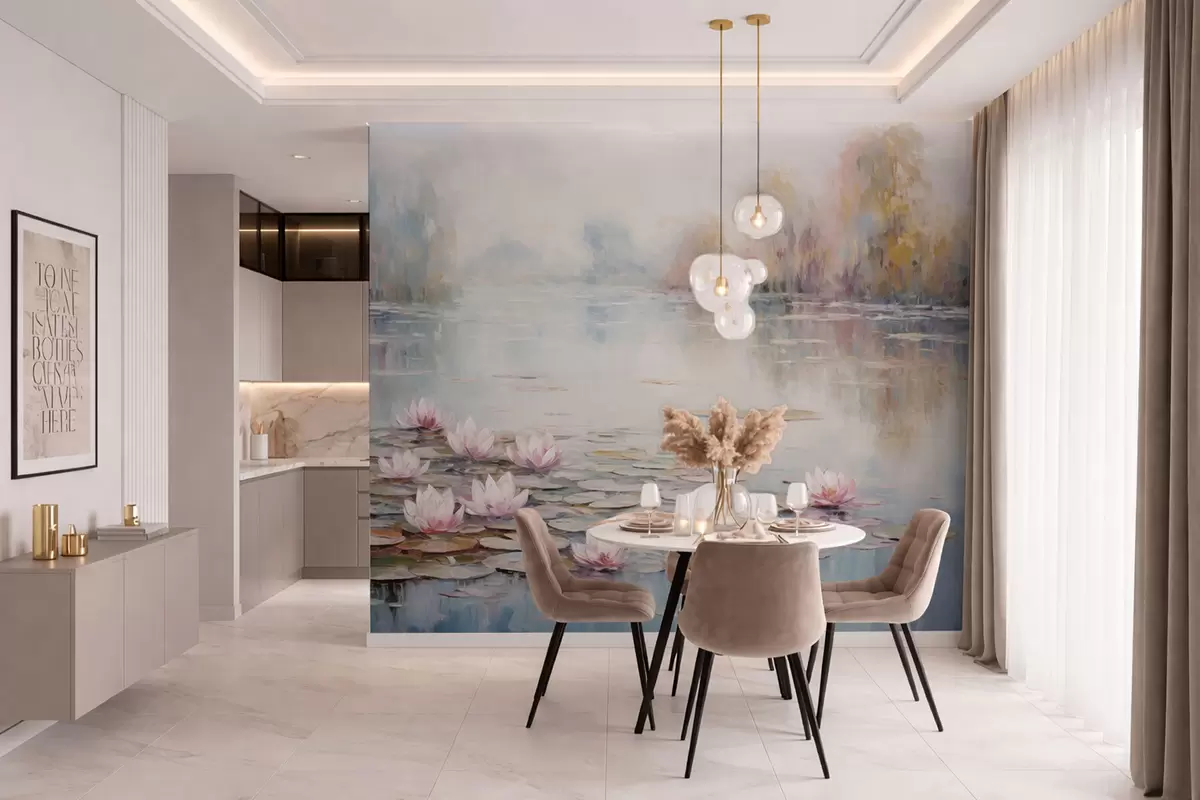 Fototapeedid Impressionistlik järv vesililledega ja pehme valgusega Nr w05515
