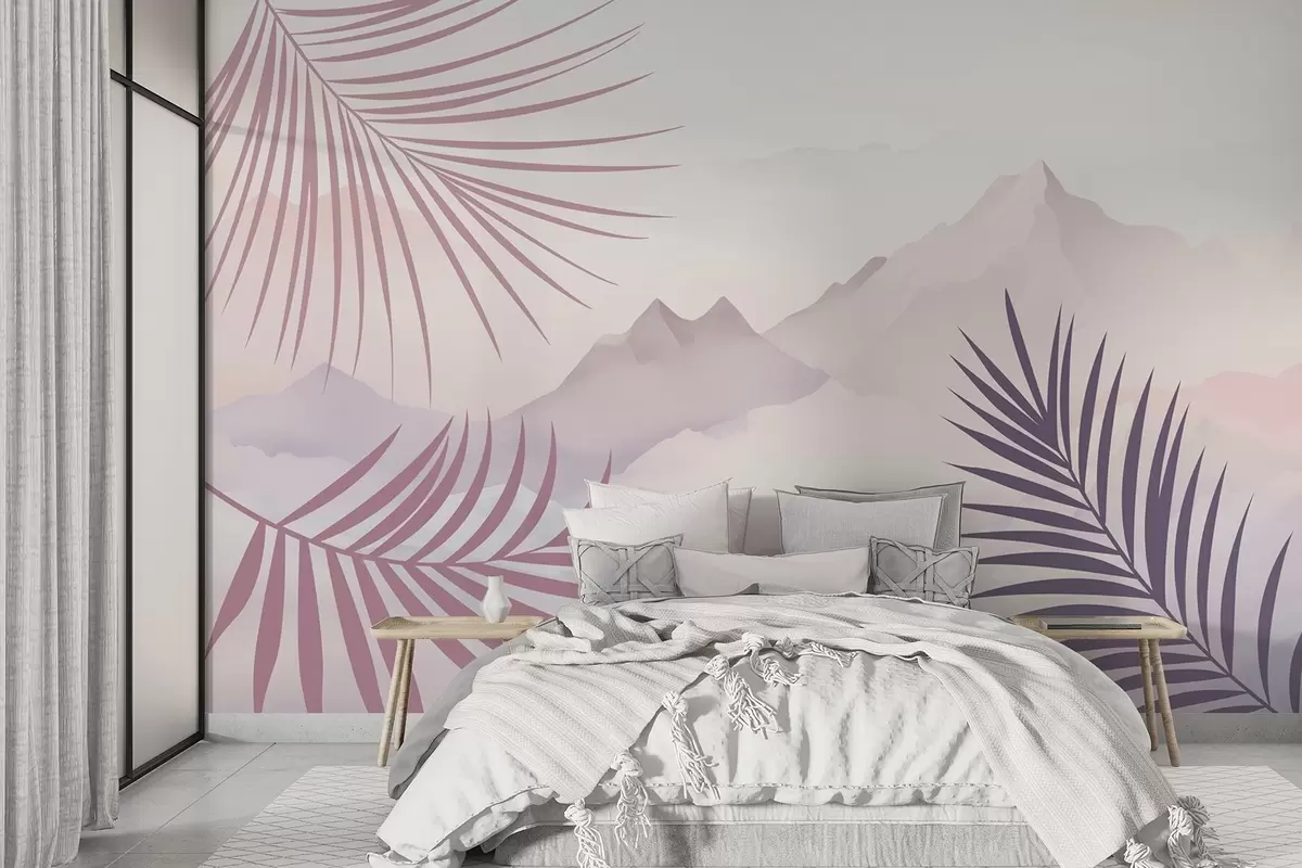 Fototapeedid Palmilehed mäetaguse taustal Nr w05548v1