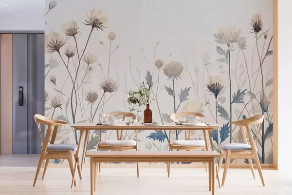 Fototapeedid Looduslikud põllurohud ja lilled, maalitud maalilises stiilis heledal taustal Nr w05563