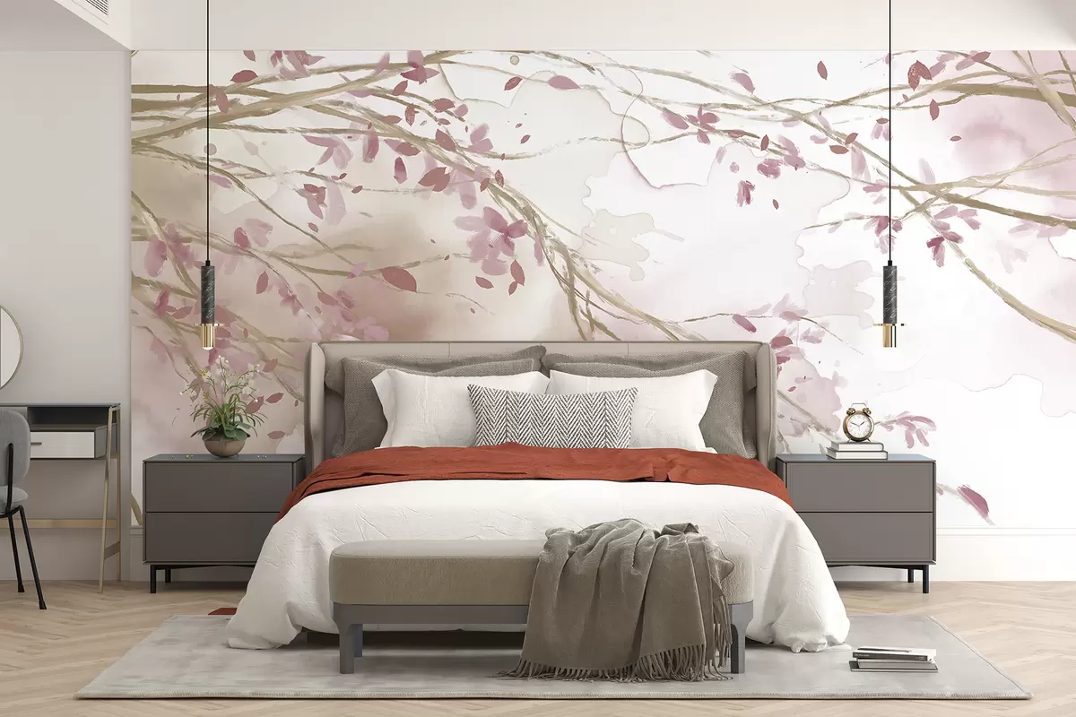 Fototapeedid Õrnad roosad ja valged lilleoksad pehme, uduse akvarellitaustaga Nr w07919v1
