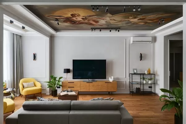 Fototapeedid seinamaaling renessansiaegsete freskode stiilis beežides ja tumedates toonides. Kaks jumala meesfiguuri teineteise poole sirutavad. Nr w08137