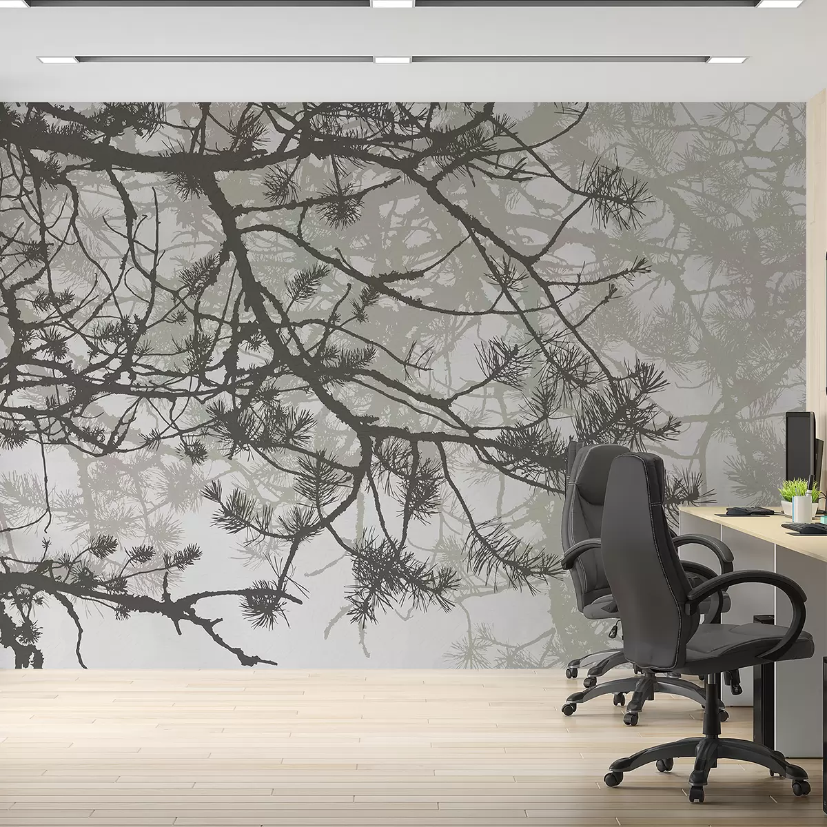 Fototapeedid suure puu oksad hallides toonides Nr w08166