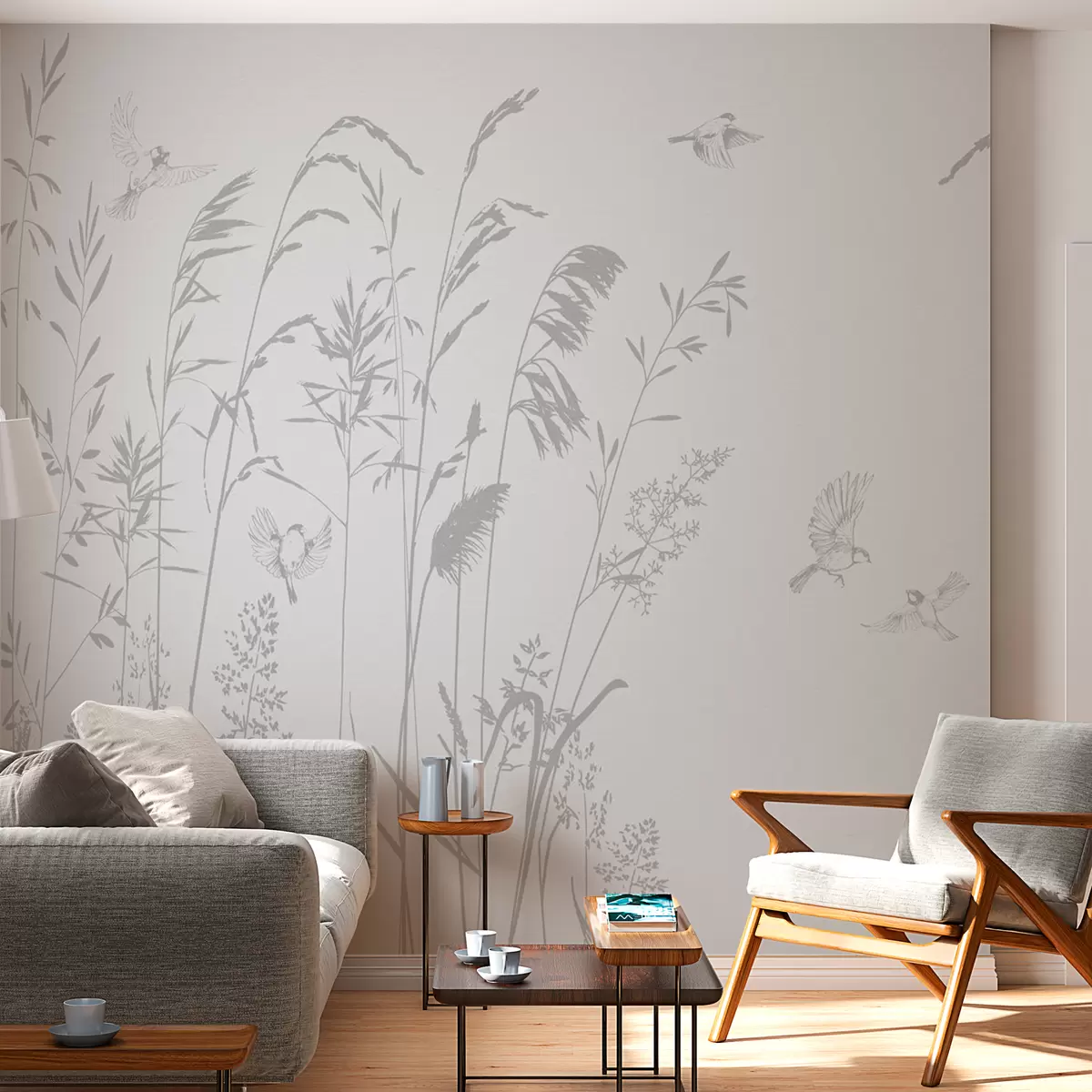 Fototapeedid Taimed ja väikesed linnud loodus minimalism hall värv Nr w08172v1
