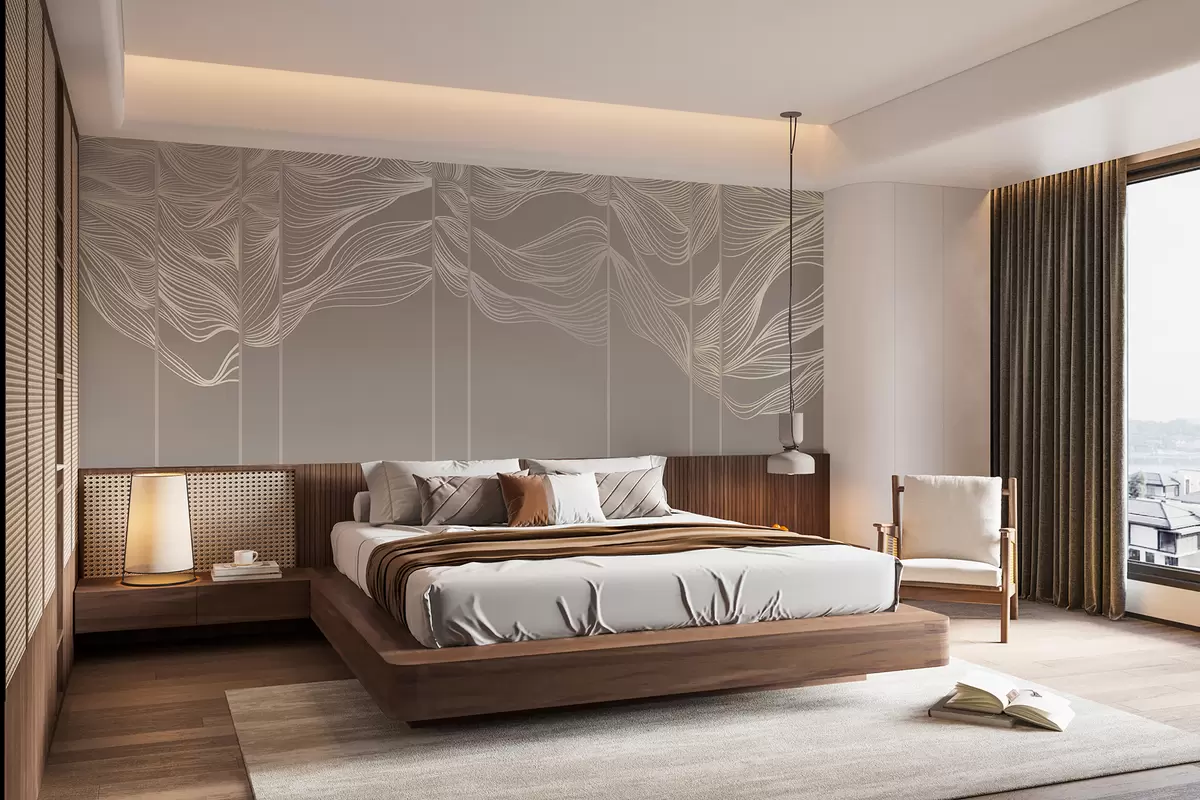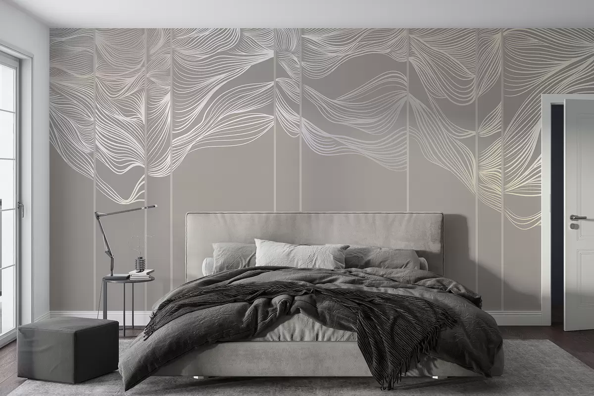 Fototapeedid Voolavad valged abstraktsed joonlained helepruunil taustal Nr w08263