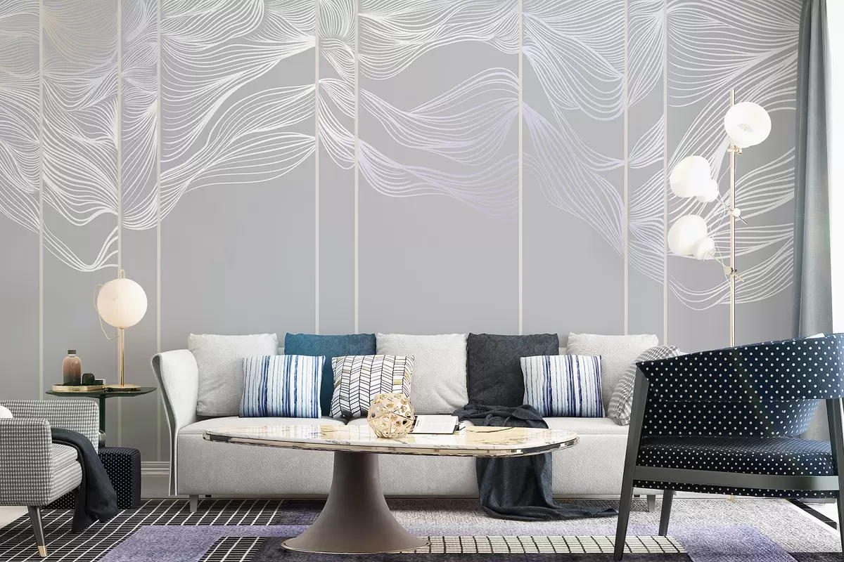 Fototapeedid Voolav valge abstraktne joonlaine lained helehallil taustal Nr w08263v1