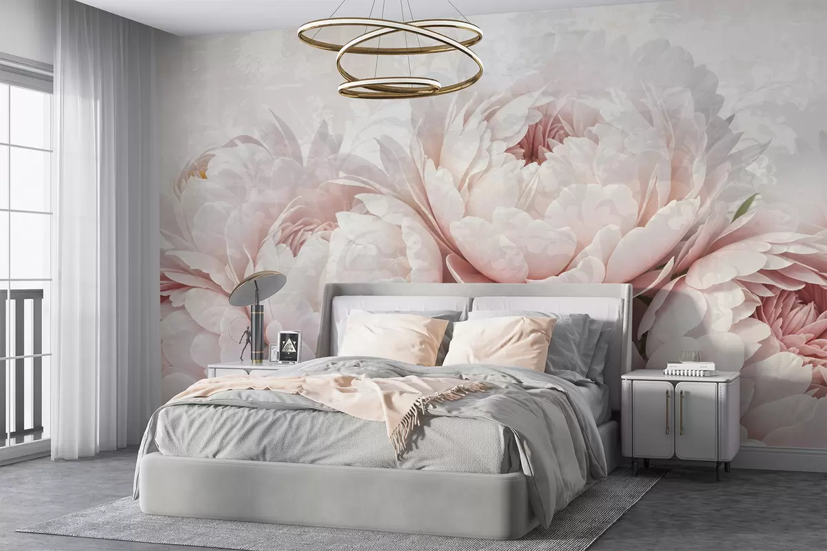 Fototapeedid Pehmed roosad peonid õrnade kroonlehtedega heleda tekstuuriga vintage-foonil Nr w08312