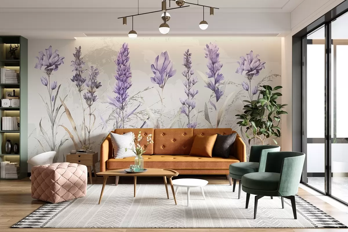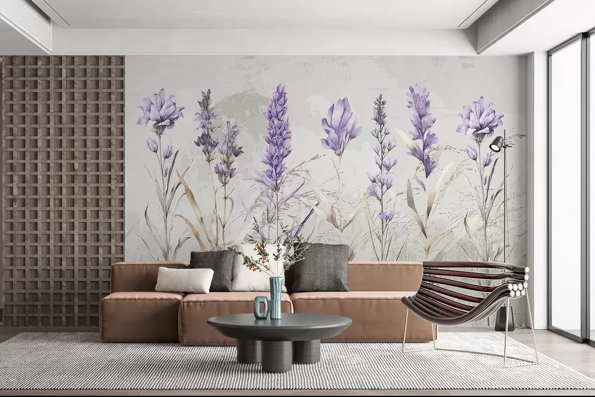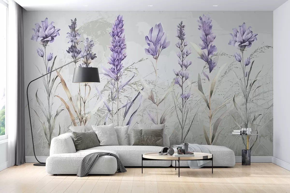Fototapeedid Lilla akvarell lillad lavendlililled pehme, hägusa tekstuuriga beeži taustaga Nr w08346