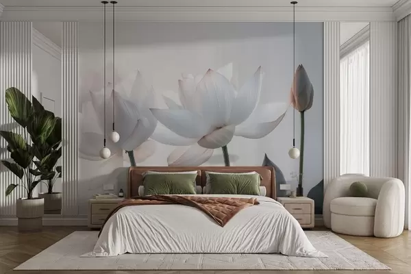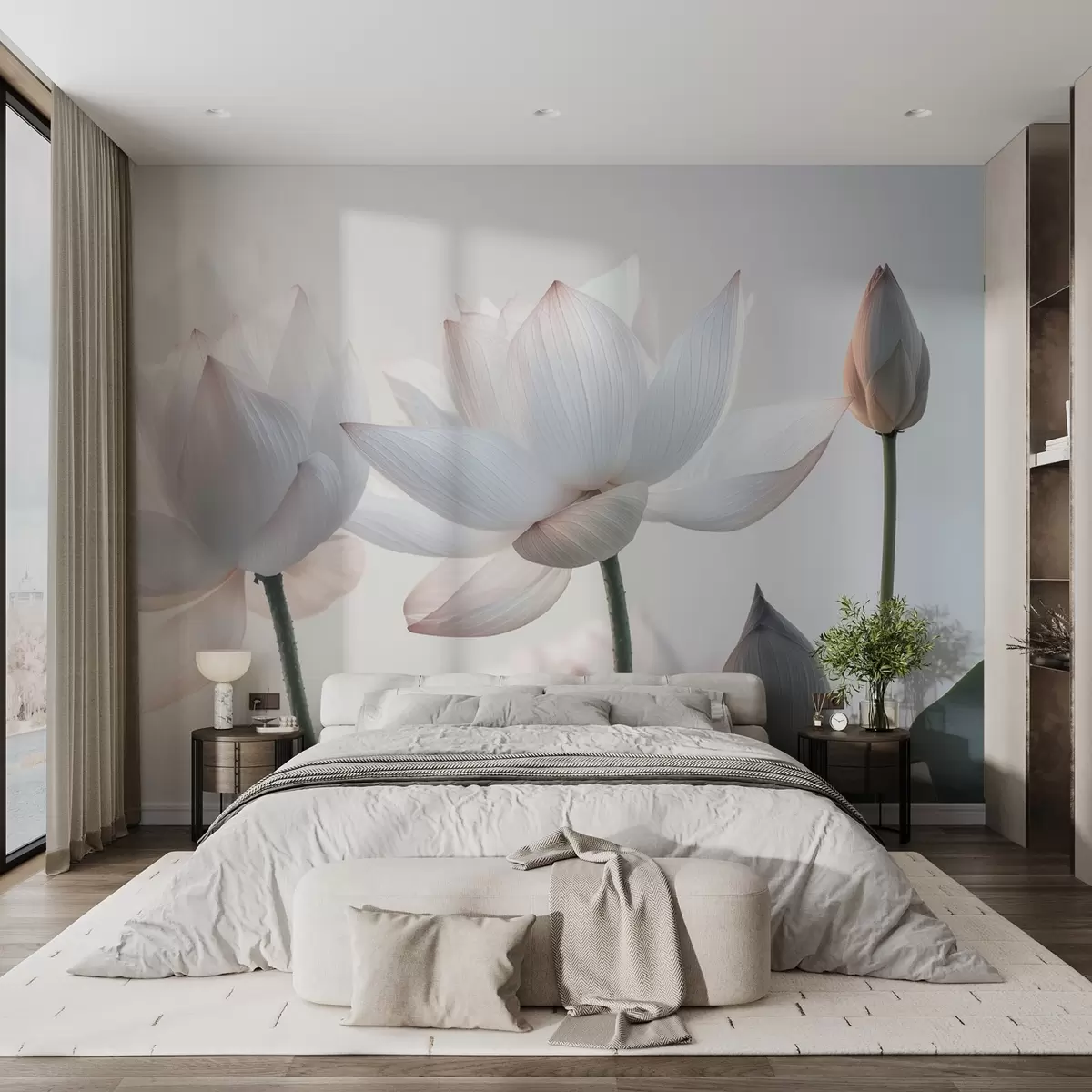 Fototapeedid Õrnad lootoslilled koos kroonlehtede ja lehtedega Nr w08488