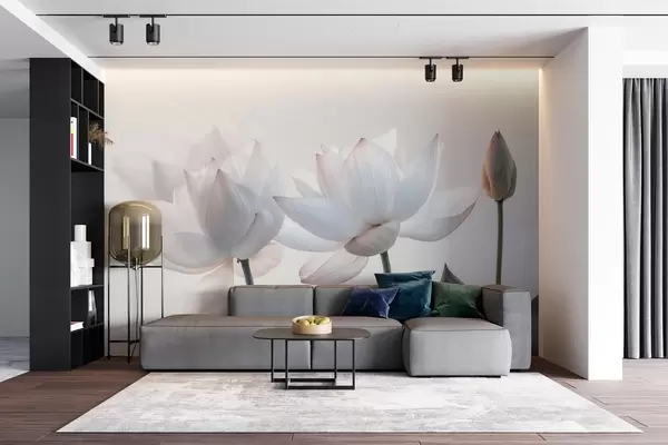Fototapeedid Õrnad lootoslilled koos kroonlehtede ja lehtedega Nr w08488