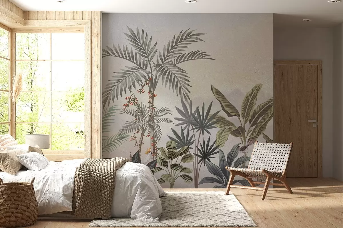 Fototapeedid Troopiline džungel palmide ja värviliste lindudega Nr w08496
