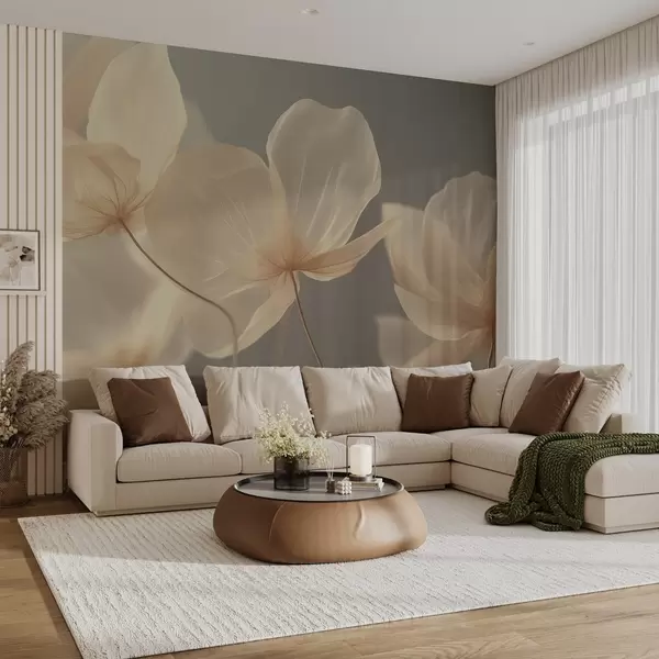 Fototapeedid Lootose kroonlehed, õrn kompositsioon halli taustaga Nr w08500v2