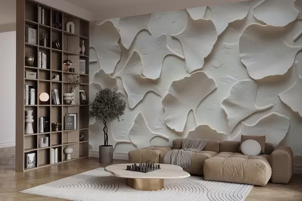 Fototapeedid Ginkgolehtede õrna reljeefse reljeefiga stukki valgel taustal Nr w08560v1