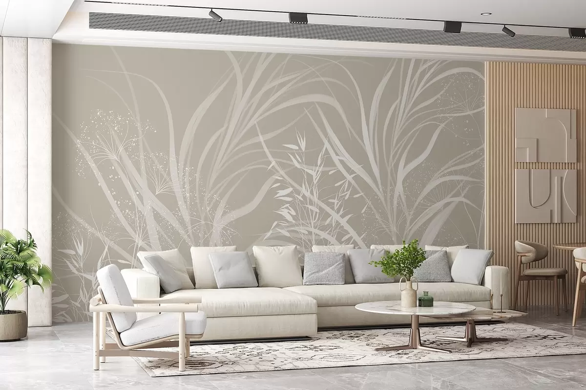 Fototapeedid Õrn kaasaegne minimalistlik valge lilleline trükis heledal pastellbeežil taustal Nr w08583