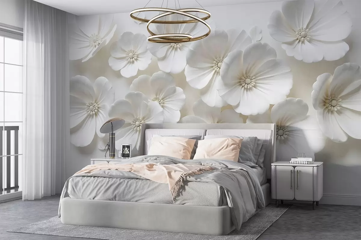 Fototapeedid Valged õrnade kroonlehtede ja keskosaga lilled heledal taustal Nr w08587