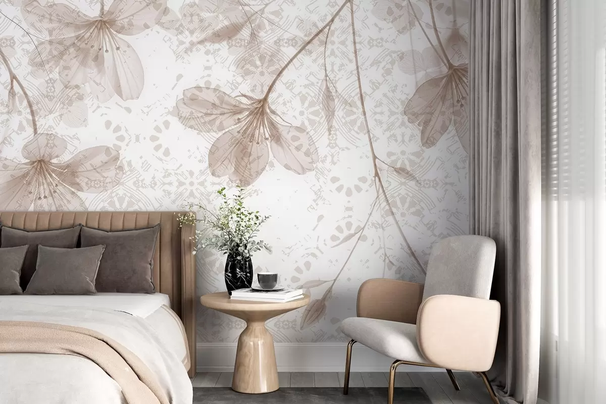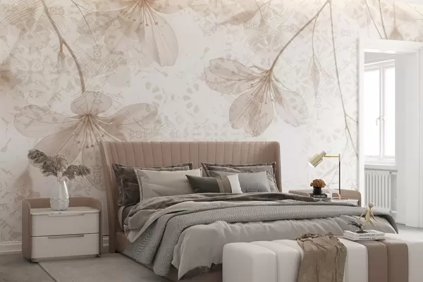 Fototapeedid Pikkade varte ja kroonlehtedega õrnad beežid ja valged lilled pehmel, hägusel taustal Nr w08588v1