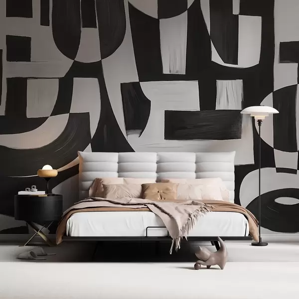 Fototapeedid Abstraktsed must-valged geomeetrilised kujundid ja mustrid, mis loovad visuaalselt silmatorkava ja dünaamilise kompositsiooni Nr w08608