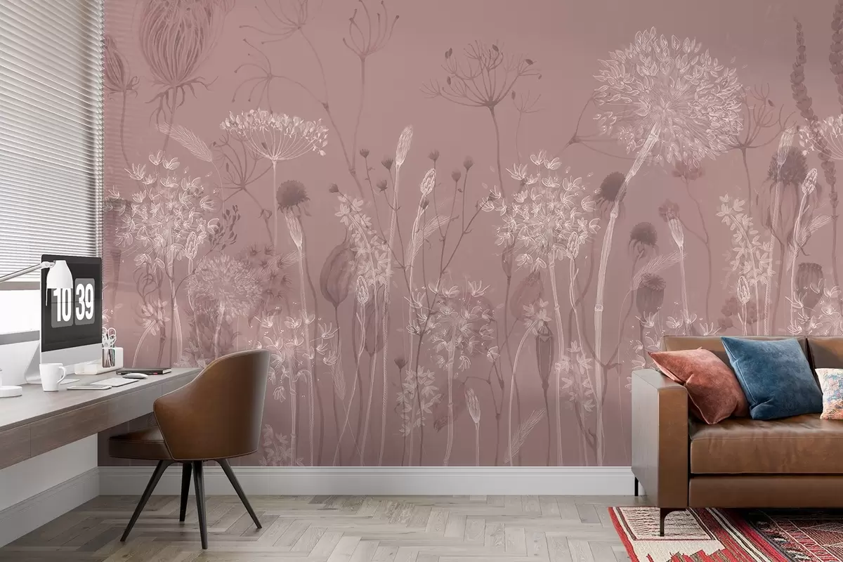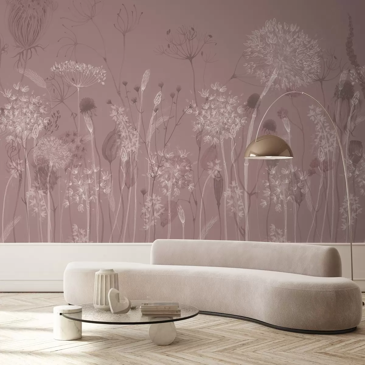 Fototapeedid Õhulised võililled ja metsalilled akvarellistiilis roosades toonides Nr w08637v1