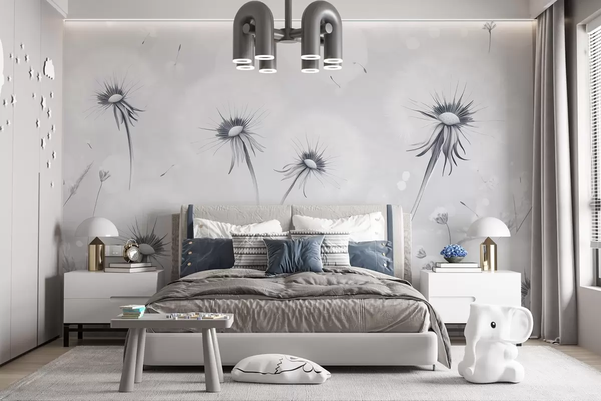 Fototapeedid Elegantsed võililled ja metsalilled maalimisstiilis sinistes toonides Nr w08657v2