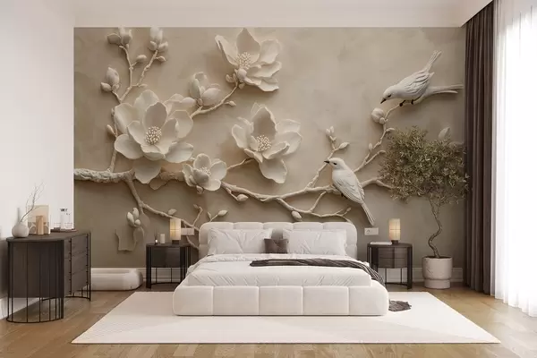 Fototapeedid 3D magnoolia oksad koos lindudega Nr w08690