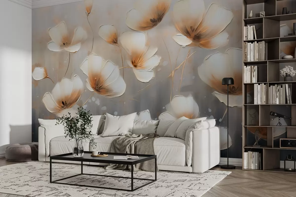 Fototapeedid Elegantne lill, mille õrnad ja pehmed kroonlehed on beeži-sinistes toonides Nr w08746v1