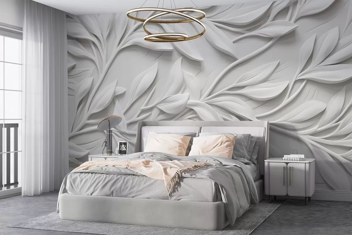 Fototapeedid Valge tekstuurne trükis lehtede ja okstega , mis tekitab tekstuursel taustal mahuka imitatsiooni efekti Nr w08778