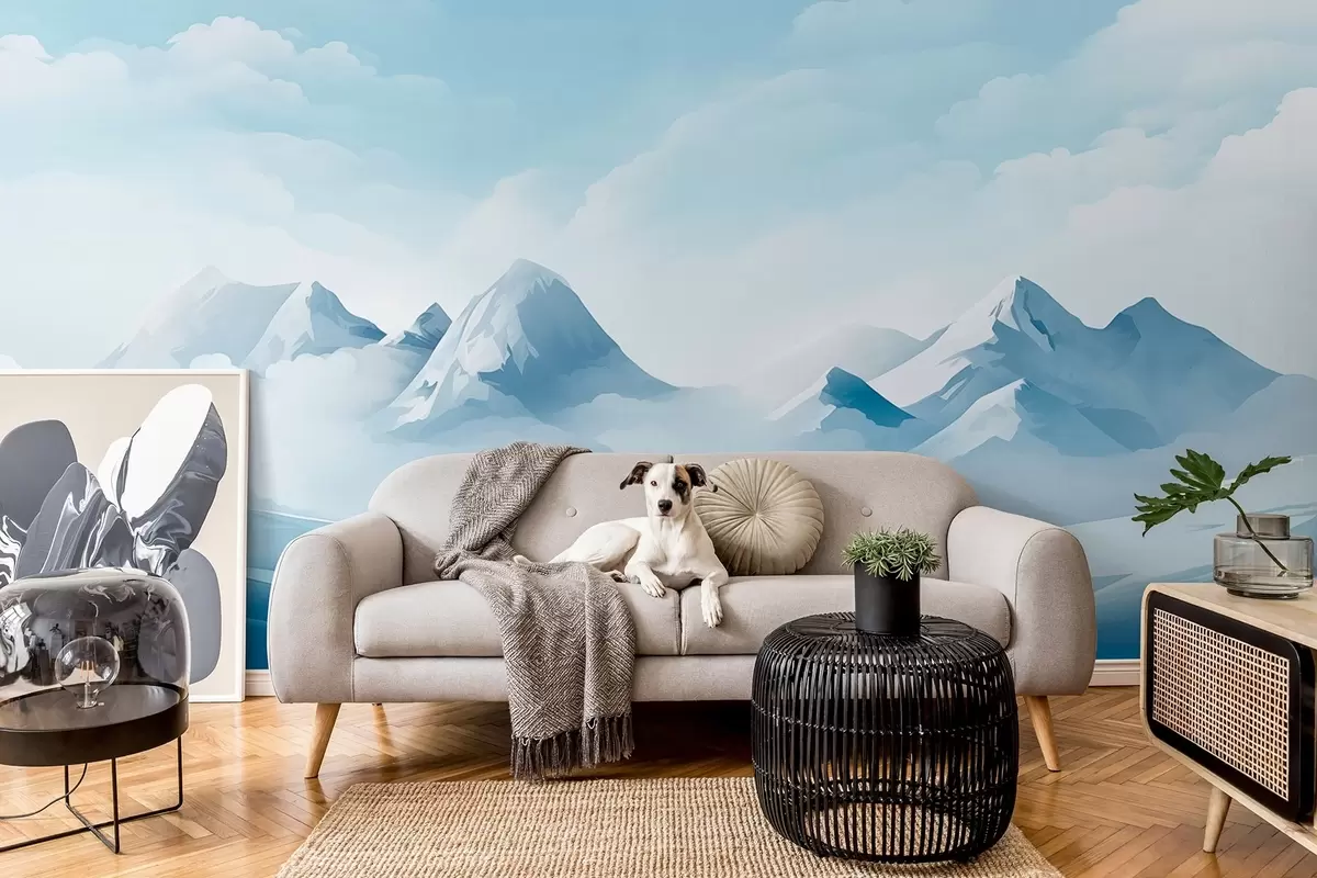 Fototapeedid Minimalistlikud sinised pilved ja mäed, jäine ilm Nr w08811