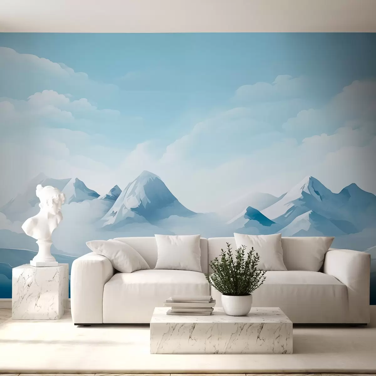 Fototapeedid Minimalistlikud sinised pilved ja mäed, jäine ilm Nr w08811