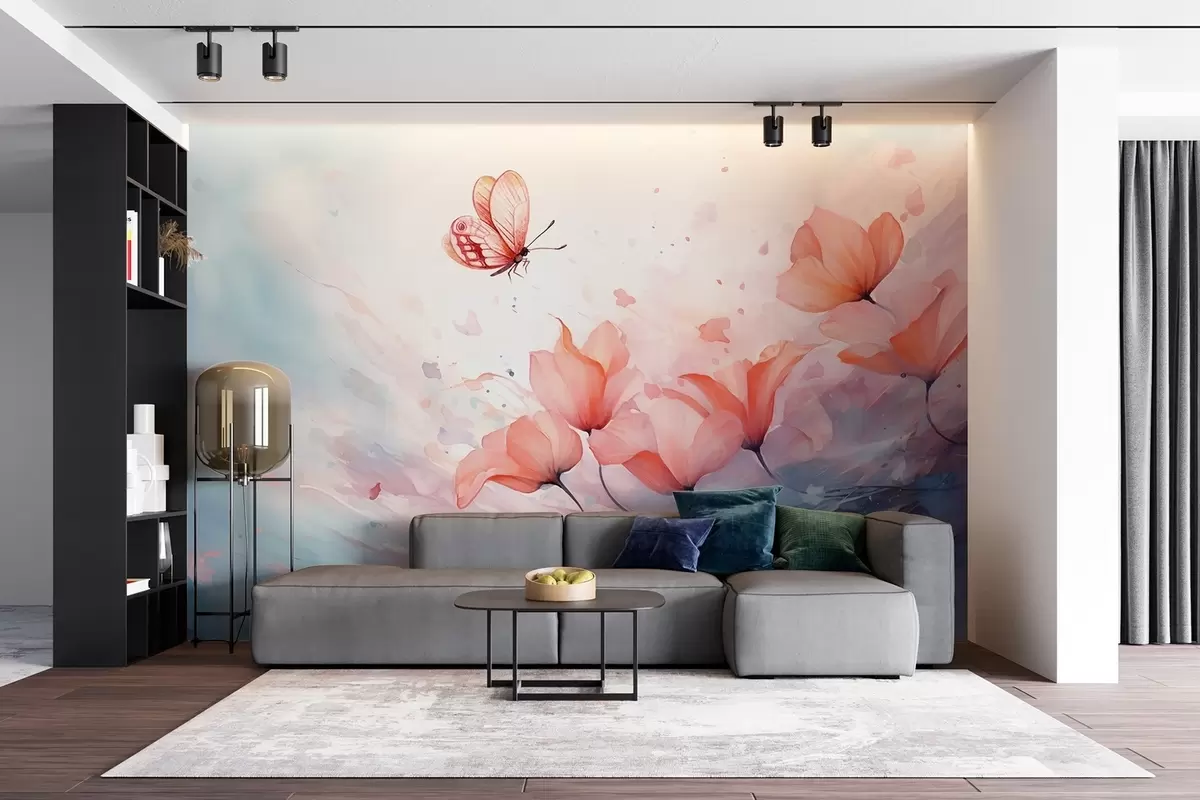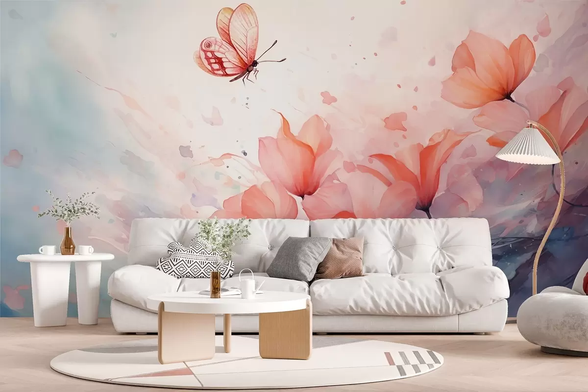 Fototapeedid Õrnad moonid koos liblikaga akvarellistiilis Nr w08849
