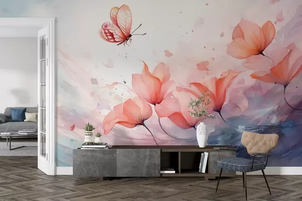 Fototapeedid Õrnad moonid koos liblikaga akvarellistiilis Nr w08849