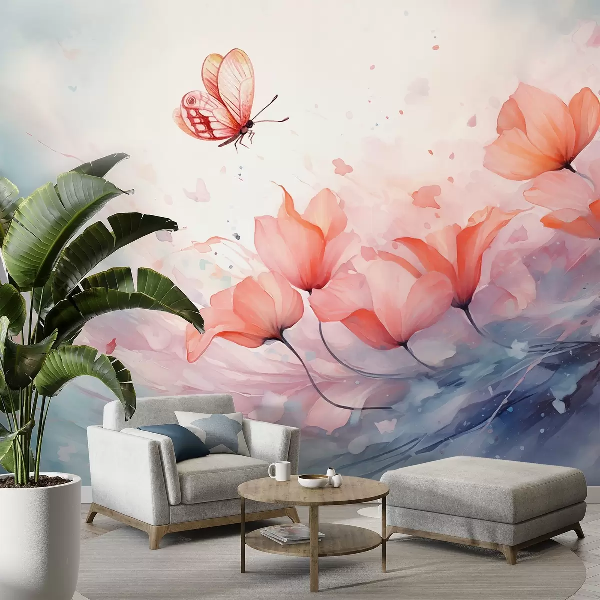 Fototapeedid Õrnad moonid koos liblikaga akvarellistiilis Nr w08849