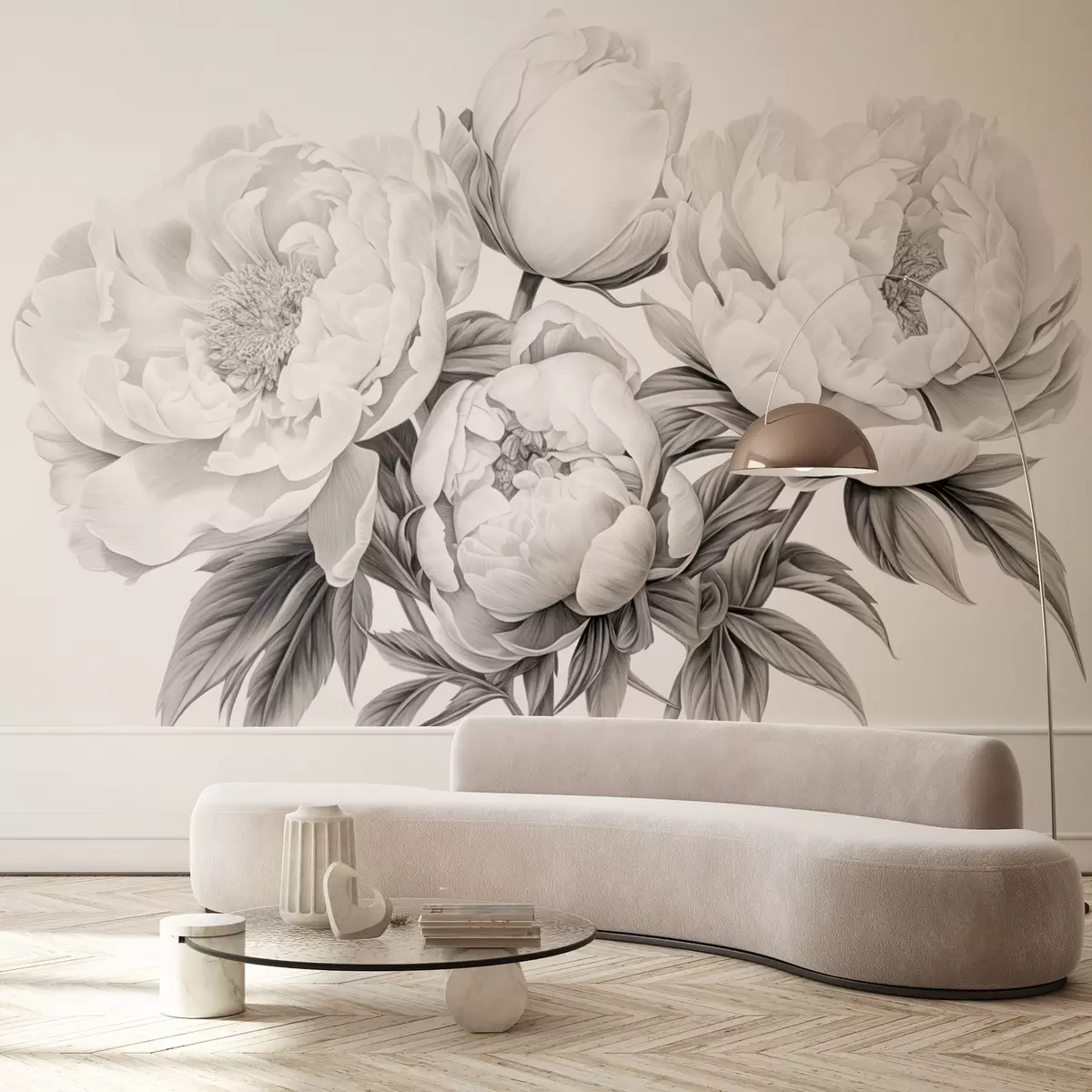 Fototapeedid Must-valged pojengid pliiatsiga joonistamise stiilis Nr w08852