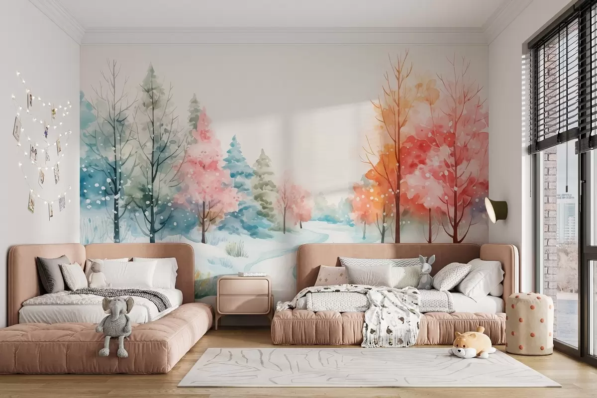 Fototapeedid Elav talvine mets akvarellistiilis Nr w08856
