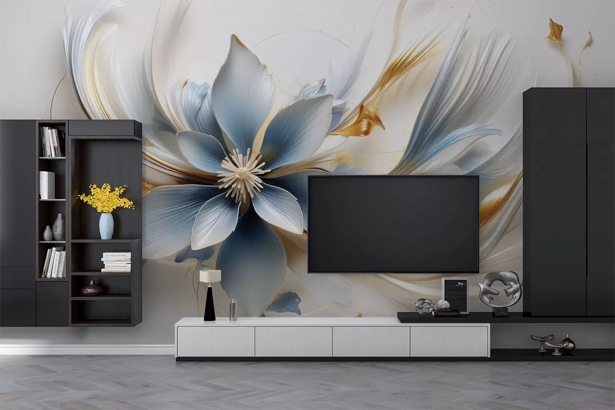 Fototapeedid Suur sinine lill abstraktsete joontega Nr w08903