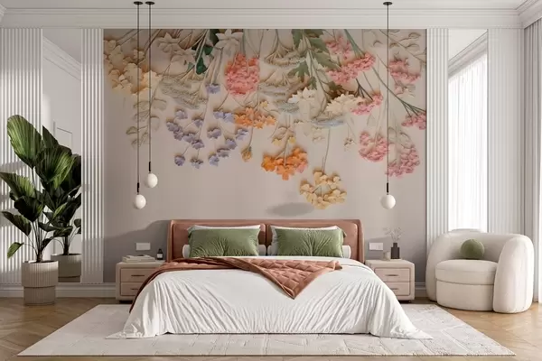 Fototapeedid Rippuvad mahukad metsalilled beežil taustal Nr w08940