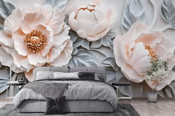 Fototapeedid Suurepärased suured pioonid koos lehtedega fresko stiilis Nr w08954