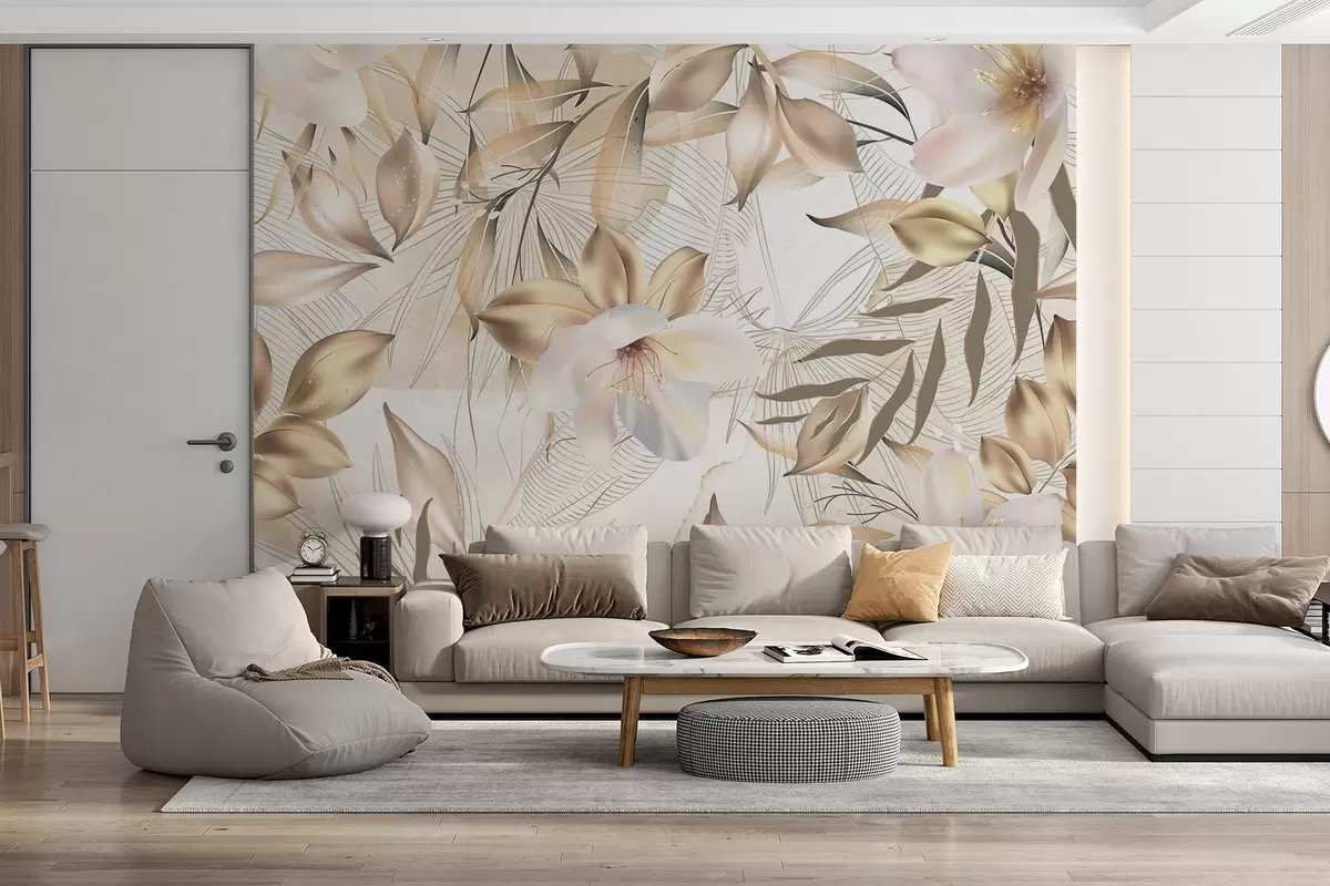 Fototapeedid Jasmiini lilled ja lehed, pehmed värvid, botaaniline illustratsioon, lilleline taust , elegantne disain, õrnad kroonlehed Nr w08977